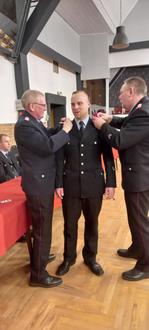 Ilse Pförtner wurde als Kassenwartin und Dominik Rutha als Sicherheitsbeauftragter in ihren Ämtern bestätigt. Aufgrund des erfolgreichen Besuchs der notwendigen Lehrgänge beförderten Gemeindebrandmeister Holger Schmidt und sein Stellvertreters Udo Rittierott unter großem Applaus Fredens Ortsbrandmeister Florian Kiehne zum Brandmeister.