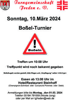 Am Freitag, 26. Januar 2024 richtet die Tischtennisabteilung der TG Freden den Ortsentscheid der Tischtennis mini-Meisterschaften aus. Diese Breitensportaktion richtet sich an Kinder, die die schnellste Rückschlagsportart der Welt einmal ausprobieren wollen. Speziell für alle Kinder im Alter von 12 Jahren oder jünger, gleichgültig ob die "Minis" noch nie, nur selten oder bereits häufiger zum Schläger gegriffen haben. Dabei dürfen sie schon Mitglied in einem Tischtennis-Verein sein, jedoch dürfen die Kinder keine Spielberechtigung eines Mitgliedsverbandes besitzen, besessen oder beantragt haben. Mädchen und Jungen spielen getrennt, jeweils unterteilt nach Altersklassen: 8 Jahre und jünger (alle Kinder, die ab dem 1. Januar 2015 geboren wurden), 9-/10-Jährige (alle Kinder, die ab dem 1. Januar 2013 bis 31. Dezember 2014 geboren wurden) und 11-/12-Jährige (alle Kinder, die ab dem 1. Januar 2011 bis 31. Dezember 2012 geboren wurden).