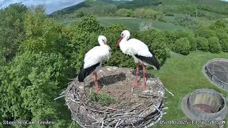 Zu dem Zeitpunkt wurde bereits ein Storchenpärchen auf dem Nest gesichtet. Bis zum 30.04.25 hat das Pärchen das Nest belegt.