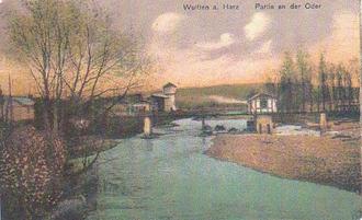 Weiter ging es entlang der Oder vorbei an der „Gänsewiese“, an die sich noch einige der älteren Teilnehmerinnen erinnern konnten. Seit 2007 ist dieser Bereich als Naturschutzgebiet ausgewiesen. Der aus dem Bett der Oder abgebaute Kies war ein begehrter Rohstoff und musste anfänglich per Hand aufgeladen werden. Die frühere Firma „Südharzer Cementwarenfabrik“ produzierte auf dem „Röhren Platz“ (jetzt Tennisplatz) verschiedene Betonartikel wie z.B. Röhren, Fußwegplatten, Betonpfosten, Treppenstufen usw.. Der Transport zum Bahnhof erfolgte über eine Loren-Brücke. Kies aus weiter entfernt liegenden Abbaustätten wurde per Kleinbahn transportiert, denn das Kiesbett reichte bis zur Hattorfer Grenze. Die Firma Gropengießer, die im Jahr 1926 gegründet wurde, betrieb ebenfalls den Kiesabbau aus der Oder über viele Jahre.