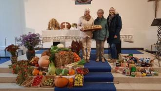 Im Gottesdienst dankte die Gemeinde für den besonders reichlichen Segen, der unserer Landwirtschaft und unseren Gärten in diesem Sommer beschert war. Elisabeth Liebl, die Leiterin der Wortgottesfeier, segnete die Gaben und die Spenden für die Osteroder Tafel, die von den Gemeindemitgliedern mitgebracht wurden. Text u. Bild: Monjeau