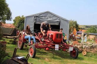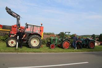 Es rollten nämlich nicht bloß die „Erdäpfel“ in das Interesse von Groß und Klein, sondern auch die Trecker, welche einst oder noch heute Erntemaschinen gezogen haben. Neben den eigens erklärten maschinellen Vorführungen auf dem Kartoffelacker kamen auch weitere Traktoren von Freunden angereist. Die weiteteste Anreise hatte, hier kurz erwähnt Robins guter Bekannter Holger Hink alias „Dr. Trecker“, der sich das Fest auf keinen Fall entgehen lassen wollte, daran konnte auch der Weg von Stade nach Dorste nichts ändern. Aus gleichen Gründen lenkten die Fahrer ihr erstaunenswertes Fahrzeug aus Marke, Förste, Wulften, Bernshausen, Osterode, Braunschweig und Hillerse.