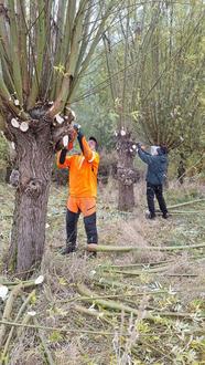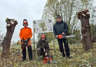 Die Kopfweiden im Biotop am Steigeweg in Wulften hatten ihre Zweige zu weit in den Himmel gestreckt. Drei Mitglieder des Heimat- und Geschichtsvereins Wulften haben sie wieder kurz geschnitten. Beteiligt an der Aktion waren Mitglieder der Familie Peinemann. Der 1. Vorsitzende des Vereins, Uwe Peinemann (rechts), sein Bruder Dirk (links) und dessen Tochter Lena vervollständigten das Trio. Lena ist gern handwerklich unterwegs und hat seit dieser Saison bereits einige Male die Arbeitsgruppe des Vereins tatkräftig unterstützt. Text: Lüer; Fotos: Verein