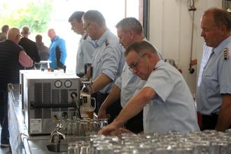 Um 11 Uhr übernahm Bürgermeister Kaiser die traditionelle Aufgabe, das erste Fass anzustechen. In diesem Jahr erwies sich das Ritual als besonders knifflig, doch unter dem Applaus der Gäste und Kameraden gelang es schließlich. Die Altersabteilung der Wehr übernahm daraufhin routiniert den Ausschank.
