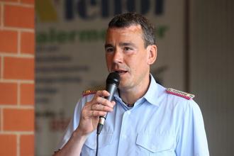Der Ortsbrandmeister freut sich über ein volles Haus bei seiner Begrüßung