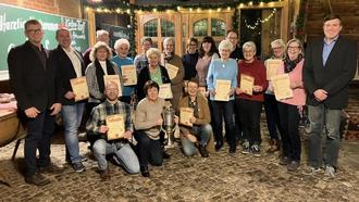 Die Ehrungen für 25 Jahre nahmen entgegen: Jonas Büttner, Ingeborg Dix, Sigrid Henning, Eckhard Henning, Sabine Matschke, Oliver Matschke, Theresa Matschke, Carlo Matschke, Daniel Merten, Kerstin Noth, Elsbeth Wehmeyer. Für 40 Jahre wurden geehrt: Stephan Bierwirth, Gisela Exner, Stefan Henkel, Ilsemarie Oestern, Nina Wemheuer.