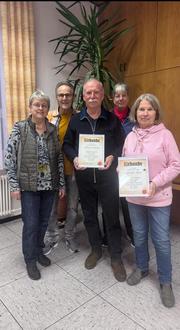 Für die langjährige Treue bei den „Dream Singers“ ehrte Bernd Tschörtner die Vereinsmitglieder Bärbel Heine und Bernd Bender mit dem „Ehrenzeichen in Bronze des Niedersächsischen Chorverbandes“ für 10jährige Mitgliedschaft und einer vereinsinternen Urkunde. Bei den anstehenden Wahlen wurde der 2. Vorsitzende Bernd Bender und die Kassenwartin Heike Buhl durch Wiederwahl in ihren Ämtern für 2 Jahre bestätigt. Turnusgemäß schied die Kassenprüferin Jutta Weber aus. Dieses Amt übernimmt Matthias Bartz, der für die Dauer von 2 Jahren neu gewählt wurde. Die „Dream Singers“ geben gern neuen Interessenten die Möglichkeit, unverbindlich an einem der Übungsabende, die donnerstags von 19.30 Uhr bis 21.30 Uhr im Gemeindehaus der St. Pankratius Kirche in der Hattorfer Kirchstraße stattfinden, teilzunehmen. Text: Tschörtner; Bild: Verein