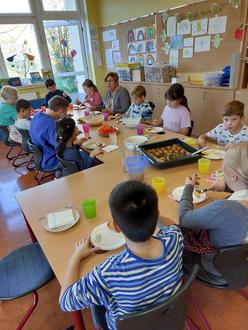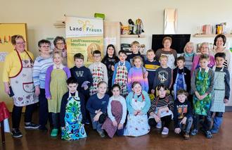 „Jetzt wird`s lecker!“ „Kochen wir heute wieder?“ „Warum kommen Sie nicht öfter!“ Ja, Kochen mit Spaß - das haben nicht nur Kinder der 3. und 4. Grundschulklasse in Hörden erfahren dürfen, sondern auch jene Landfrauen, die die Koch-AG unter professioneller Anleitung von Gisela Exner geplant und mit den Kindern von September 2024 bis März 2025 durchgeführt haben. Bereits die Vorgängerin der jetzigen Rektorin Frau Lagg, Frau Himmel-Merz, hatte eine Koch-AG ins Leben gerufen. Dann allerdings wechselte Frau Himmel-Merz die Stelle, die Corona-Epidemie machte alle Vorhaben zunichte und die neu angeschaffte Küche blieb ungenutzt. Aber jetzt ist die Idee wieder aufgegriffen worden. Frau Lagg informierte die Eltern nach den Sommerferien über das Angebot, dass die Landfrauen an einzelnen Terminen gemeinsam mit den Kindern kochen, essen und Themen rund um die Ernährung besprechen werden. An den betreffenden Tagen sollte die AG aus Schülern der 3. und 4. Klasse von der 5. bis zur 7. Stunde stattfinden, Unterrichtsschluss war dann um 14.30 Uhr.