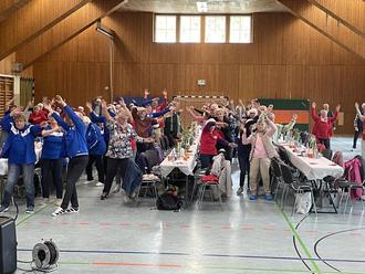 Vor der offiziellen Eröffnung durften sich die Gäste zunächst mit Kuchen oder Schnittchen versorgen und sich gemeinsam bei Kaffee oder Tee stärken und austauschen. Den Begrüßungsreigen eröffnete schließlich Marion Meyer, im Turnkreis verantwortlich für den Bereich Frauen und Ältere, welche in Absprache mit Sonja Schweidler das Programm für den Nachmittag gestaltete. Ihr schlossen sich Ortsbürgermeisterin Kathrin Schrader, der Vorsitzende des Turnkreises Reinhard Henkel und der TSV-Vorsitzende Olaf Kaisner mit ihren Gruß- und Dankesworten an. Dann wurde es sportlich in der Halle. Unter Anleitung von Christa Ahrens vom MTV Förste begann der sportliche Teil mit Stuhlgymnastik bevor dann schwungvoll und passend unter Sonjas Leitung zu Udo Jürgens „Mit 66 Jahren…“ getanzt wurde. Zum Schmunzeln, aber auch Nachdenken, führte eine von Marion Meyer vorgetragene Geschichte zum Thema „Früher war alles besser…“. Am Ende gab es Präsente. Die ältesten Teilnehmerinnen und Teilnehmer jedes Vereins wurden mit Blumen und Präsenten bedacht. Auch die Ehrenvorsitzende des Turnkreises Osterode, Helga Maaß, durfte sich über einen Frühlingsgruß aus den Händen von Marion Meyer freuen. Gegen 18:00 Uhr endete nach 3 Stunden mit Musik, Unterhaltung und Spaß wieder einmal viel zu schnell ein kurzweiliges Seniorentreffen 2024. Für das Treffen im nächsten Jahr wird noch ein Ausrichter gesucht. Interessenten möchten sich bitte direkt mit dem Vorstand vom Turnkreis Osterode in Verbindung setzen. Text und Bild: Kaisner.