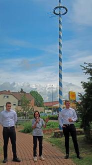 Bürgermeisterin Elvira Schaper mit den Sprechern der Junggesellen, links Rene Hartwig und rechts Malte Lohrengel.