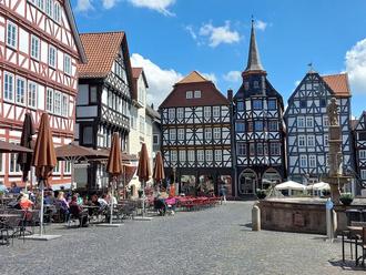 Mit dieser Aktion beginnt die Geschichte der Stadt Fritzlar. Bonifatius gründete ein Kloster, später folgte eine Kaiserpfalz. Fritzlar wurde Schauplatz von weltgeschichtlicher Bedeutung. Das endete im 14. Jahrhundert und Fritzlar wurde die beschauliche Kleinstadt, wie man sie heute erleben kann. Die Fachwerkhäuser zeigen das kurmainzer Flair, denn bis 1803 gehörte Fritzlar zu Kurmainz.