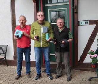 Auf dem Foto von links: Manfred Beushausen (Hauswart), Uwe Peinemann (1. Vors.) und Gerhard Lüer (Rechnungsführer) mit dem gesponserten Überwachungsmaterial.