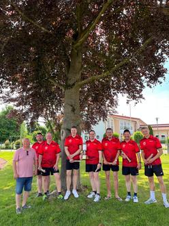 Zum Abschluss der Punktspiel-Serie spielte die Tischtennisabteilung des SV Rot-Weiß Hörden das traditionelle Ostsee-Pokalturnier aus. Im Modus jeder gegen jeden war es bei acht Teilnehmern und den entsprechenden Temperaturen eine schweißtreibende und konditionell anspruchsvolle Angelegenheit. Axel Peters war wie im letzten Jahr nicht zu bezwingen und gewann ungeschlagen den Pokal. Platz 2 sicherte sich Rouven Kowalski, der sich nur dem Sieger geschlagen geben musste. Dritter wurde mit drei Niederlagen Joachim Peters. Die Siegerehrung fand beim anschließenden Grilltag statt. Bei der Pokalübergabe überraschte Abteilungsleiter Michael Diekmann alle Teilnehmer noch mit einen Harzer Knüppel. Text u. Bild: Peters