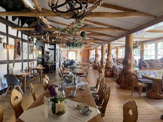 Anschließend ging es mit dem Bus nach oben zur Hängebrücke, die man gegen kleines Entgelt überqueren konnte. Die Aussicht auf die Rappbodetalsperre war atemberaubend. Gut gelaunt ging es weiter in ein mitten im Wald gelegenes altes Forsthaus Todtenrode. Reiche Holzschnitzereien, ein gemütliches Ambiente luden die Reisenden zu Kaffee und Kuchen ein.