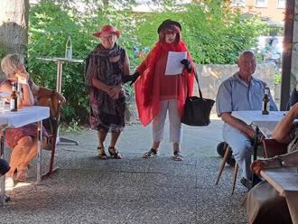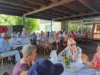 Der „Wettergott“ meinte es auch diesmal wieder gut mit den Gästen, die der Einladung des SoVD Hattorf zum diesjährigen Sommerfest am DGH gefolgt waren. Die 1. Vorsitzende, Kerstin Pfeiffer, begrüßte die zahlreich erschienenen Gäste, bedankte sich für die Kuchen- und -/Salatspenden und natürlich bei den Vorstandskollegen*innen für die Organisation des Festes. Nachdem sich alle an einem reichhaltigen Buffet mit selbstgebackenen Kuchen und Torten gestärkt hatten, sorgten Sigrid Koch und Gabi Mackensen mit lustigen Sketchen für Unterhaltung und viel Gelächter. Beim Ratespiel von Interpreten alter Schlager gab es sogar kleine Preise zu gewinnen. Am Abend wurde dann noch gegrillt und die Auswahl der vielen selbstgemachten Salate erfreute nochmal den Gaumen aller. So verbrachte man einen gemütlichen Tag in geselliger Runde. Text und Foto: Dicken