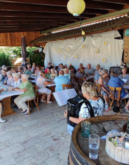 Der „Wettergott“ meinte es auch diesmal wieder gut mit den Gästen, die der Einladung des SoVD Hattorf zum diesjährigen Sommerfes gefolgt waren. Die 1. Vorsitzende, Kerstin Pfeiffer, begrüßte die zahlreich erschienenen Gäste, bedankte sich für die Kuchen- und -/Salatspenden und natürlich bei den Vorstandskollegen*innen für die Organisation des Festes. Ihr Dank ging auch an die Familie Uhlhorn, die ihre Hilfe und ihren Biergarten zur Verfügung gestellt hatten. Nachdem sich alle an einem reichhaltigen Buffet mit selbstgebackenen Kuchen und Torten gestärkt hatten, sorgten Sigrid Koch, Bianca Kaiser und Monika Lakemann mit lustigen Sketchen für Unterhaltung und viel Gelächter. Musikalisch begleitet wurde der Nachmittag von der 2. Vors., Gabi Kirchhoff, die auf ihrem Akkordeon bekannte Lieder spielte, die zum Mitsingen animierten. Am Abend wurde dann noch gegrillt und die Auswahl der vielen selbstgemachten Salate erfreute nochmal den Gaumen aller. So verbrachte man einen gemütlichen Tag in geselliger Runde. Text und Foto: Dicken