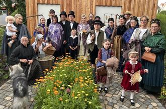 Der Garten des Hus in Dieke war trotz des regnerischen Wetters gut besucht. Am frühen Nachmittag gab es als Höhepunkt eine Modenschau mit original Schwiegershäuser Trachten. Rosemarie Oppermann stellte die einzelnen farbenfrohen Trachten und ihre Bedeutung vor.