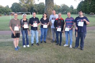 In der Doppelkonkurrenz erreichten Axel Peters und Alexander Bierwirth beide (RW Hörden) gegen Becker/Facius das Endspiel. Im zweiten Halbfinale waren Franke/Polley gegen Joachim Peters (RW Hörden) und Hans-Ludwig Mönch (TSV Steina) erfolgreich. Im Doppelendspiel ließen Franke/Polley nichts anbrennen und gewannen klar mit 3:0 Sätzen. Beim geselligen Abschluss fand die Siegerehrung statt, in der die begehrten Mettwürste an die Sieger und Zweitplatzierten überreicht wurden. Text u. Bild: Peters