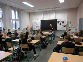 In der Grundschule war der Autor Jens Reinländer aus Frohburg bei Leipzig zu Gast. Mit seiner turbulenten multimedialen Veranstaltung zum Buch "Rabaz im langen Lulatsch" begeisterte er die Schüler der beiden 3. Klassen.
