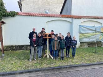 Im Gepäck hatten die Schüler ein selbst gebautes Vogelhaus. Dieses entstand im Rahmen der Arbeitsgemeinschaft „Handwerk“ unter fachkundiger Anleitung von Steffen Lahmann. Stellvertretend für die Bürgermeisterin nahm Amtsleiter Marco Henschel das Geschenk entgegen und bedankte sich bei den Schülern und Herrn Lahmann. Für die Kinder konnte auch noch schnell eine „süße Entschädigung“ organisiert werden. Das Vogelhaus ist bereits das zweite Geschenk der Arbeitsgemeinschaft, die schon Sitzbänke für die Einheitsgemeinde gebaut hat. Auch Steffen Lahmann wurde gedankt, da durch sein Engagement die Arbeitsgemeinschaft besteht.