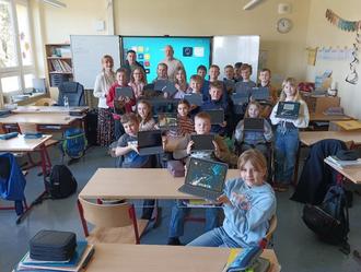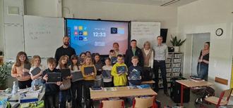 Hierbei handelte es sich nicht um einen Aprilscherz und so leuchteten die Augen bei Schülern und Lehrern gleichermaßen. Die Übergabe markiert den Abschluss von zwei Förderprogrammen, mit denen die Grundschulen auf den neuesten Stand der Technik gebracht wurden. Das EDV-Netz der Schulen wurde zukunftssicher ertüchtigt. In den Schulen wurde flächendeckendes WLAN für den Unterricht eingerichtet und ein Großteil der Tafeln wurde durch hochmoderne digitale Tafeln, sog. Interaktive Whiteboards, ersetzt. So kommunizieren interaktive Tafeln und schulgebundene Endgeräte über WLAN und datenschutzkonform miteinander.
