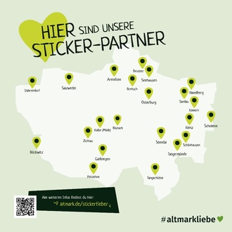 Weitere Stickerpartner gesucht: Gastgeber oder Inhaber von Freizeit-, Gastronomie- oder Kultureinrichtungen sind herzlich eingeladen, Stickerpartnern zu werden? Die Anmeldung ist kostenlos und erfolgt über ein Online-Formular auf: www.altmarkliebe.de/sticker-partner