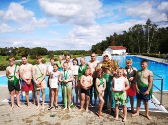 Am Sonntag, dem 23.06.2024 fand das Neptun- und Familienfest des Waldbades Dobberkau statt. Bei gutem Wetter eröffnete der Förderverein des Waldbades 15 Uhr mit dem Einzug des Neptuns samt Gefolge die Veranstaltung.