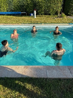 Wie bereits im letzten Jahr stellte dafür Doreen ihren wunderschönen Pool zur Verfügung. Für unsere Trainerin Jeanett war die Durchführung einer Aqua-Fitness-Stunde relatives Neuland und so war der Spaß garantiert.