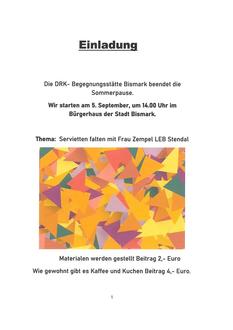 | Freitag, | 05.09.2024 | Servietten falten (LEB Stendal) |