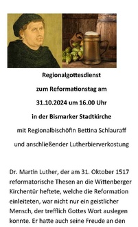 | 16:00 Uhr | Bismark | RegionalGD zum Reformationstag mit Regionalbischöfin Schlauraff |