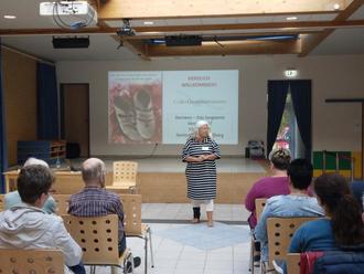 In einem anschaulichen Vortrag schilderte Frau Pohland die ersten Erkennungszeichen einer beginnenden Demenz und gab hilfreich Hinweise bezüglich des Verhaltens gegenüber einer dementen Person. Sie wies auch auf die verschiedenen Testverfahren zur Erkennung einer Demenz hin. Es wurden die Veränderungen im Gehirn anschaulich dargestellt. In ihrem zweiten Themenschwerpunkt wurden mögliche Wege der die Kommunikation mit Menschen mit Demenz erläutert. Ein Gespräch mit einer dementen Person zu führen, wird im Laufe der Erkrankung immer schwieriger und Frau Pohland gab Tipps zur Gesprächsführung. Die Teilnehmenden lobten den Vortrag und es kamen bereits Nachfragen nach einer Fortsetzung mit anderen Themenschwerpunkten. Zum Abschluss der Veranstaltung überreichte Dieter Johann ein Blumenpräsent an Frau Pohland. Nach dem Vortrag wurde die Gelegenheit genutzt, um Fragen mit Frau Pohland in einem persönlichen Gespräch zu klären.