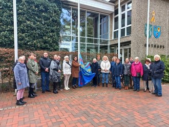 Nach dem feierlichen Hissen der Fahne vor dem Rathaus fanden sich die Teilnehmenden zu einem gemütlichen Kaffeetrinken im Rathaus ein. In entspannter Atmosphäre wurde die Gelegenheit genutzt, um Gespräche zu führen, Erfahrungen auszutauschen und Ideen zum sensiblen Umgang mit dem wichtigen Thema in der Gesellschaft zu entwickeln.