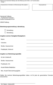 Nutzen Sie die Gelegenheit, Ihren Beherbergungsbetrieb rechtzeitig bei der Gemeinde Faßberg anzumelden, um die Einleitung eines Ordnungswidrigkeitenverfahrens zu vermeiden.