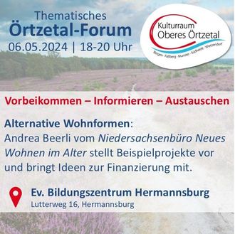 am 06. Mai 2025 findet das nächste Örtzetal-Forum des Kulturraums Oberes Örtzetal statt, dieses Mal mit dem Thema „Alternative Wohnformen“.