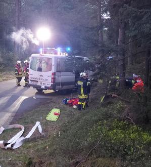 MANV - Ein Kleinbus ist mit einem Pkw zusammengestoßen. Eine Person ist eingeklemmt und weitere verletzt.