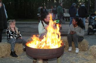 Die Kinder nutzten ausgiebig die Hüpfburg und ihr „kleines“ Osterfeuer, um ihre Stockbrote zu backen. Unweit davon wurde das „große“ Osterfeuer in einer Feuerschale entfacht und schnell brannte es lichterloh. Zuerst ließ die rechte Osterfeuerstimmung auf sich warten, da die Sonne vom stahlblauen Himmel schien. Das brachte allerdings die Gelegenheit sich am Würstchenstand der Schlange anzuschließen. Der Förderverein hatte den Grillstand besetzt und war mit Kameraden der Einsatzabteilung fleißig damit beschäftigt, die Bratwürste und Pommes sowie selbstgemachte Burger unter die Leute zu bringen.