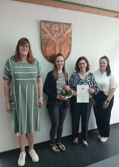 Gratulanten aus dem Fachbereich Bürgerdienste Standesbeamtin (v. l. Carola Gehle, Merle Brenner, Bürgermeisterin Kerstin Speder, Angelique Litau)