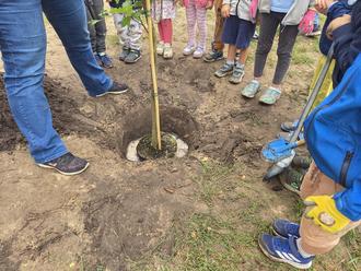 Schon beim Ausheben des Pflanzlochs waren alle hochmotiviert dabei. Mit vereinten Kräften haben wir den jungen Baum behutsam eingesetzt, Erde aufgefüllt und ordentlich angegossen. Die Kinder haben voller Stolz zugeschaut – und viele haben sogar versprochen, die Rotbuche regelmäßig zu besuchen und beim Wachsen zu begleiten.