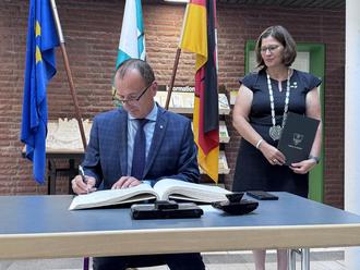 Am Freitag, den 08. August 2025, wurde Bürgermeister Radosław Łanoszka – erstmalig in seiner Funktion als Wójt der polnischen Partnergemeinde Duszniki – von Frau Bürgermeisterin Speder im Rathaus empfangen. Im Rahmen dieses feierlichen Empfangs der Schützen trug er sich in das Goldene Buch der Gemeinde ein – ein Zeichen der Verbundenheit und Wertschätzung für das Engagement unserer Schützen und die Gemeinschaft vor Ort.