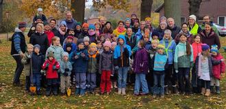 Das fröhliche Grund-Schul-Kinder-Eltern-Pflanzteam am Naturparktag in Garstedt.