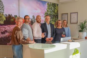 (v. li.) Janine Tadsen, André Bartz, Steffen Kuhlmann (Hörstudio Weghenkel), Jens Köster (Samtgemeindebürgermeister), Sandra Harwath und Antje Böttcher.