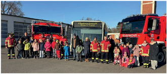 Der besondere Ausflug wurde durch eine glückliche Fügung ermöglicht: Ein Vater aus der Kinderfeuerwehr, der selbst bei der Bundeswehr Feuerwehr angestellt ist, stellte den Kontakt her und organisierte den Besuch.