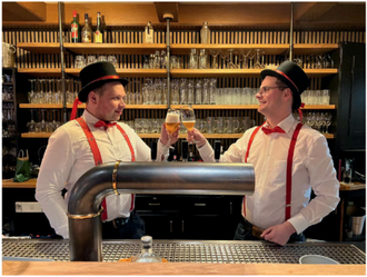 Ein Prosit auf Faslam in Wulfsen: Die Faslamseltern Mudder Leander Rick und Vadder Nils Meyer stimmen sich schon mal ein.