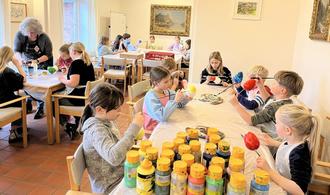 Die kreative Kinderschar war ganz emsig beim Eierbemalen.