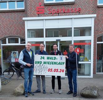 Dieses Team wirbt für den Wald- und Wiesenlauf: Organisator Jürgen Meinberg, Ingo Gräper von der Sparkasse Harburg Buxtehude, Marco Düver vom EDEKA-MARKT Düver und der MTV-Vorsitzende Jörg Schulze.