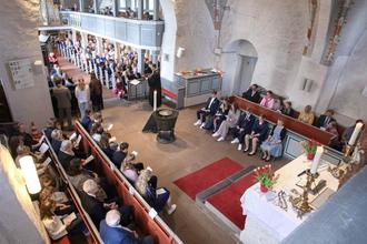 Am Ende der Konfizeit steht die Konfirmation mit vielen Gästen, Gottesdienst und schönem Fest.