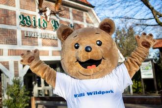 Maskottchen Willi Wildpark freut sich auf viele Besucher zum 55. Wildpark-Jubiläum
