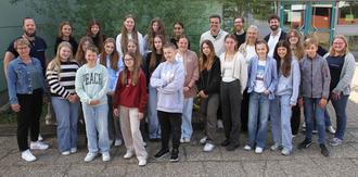 1. Reihe von links: Katrin Ragge und Lea Tewes (letzte Person rechts) 2. Reihe von links: Andreas Brammer, David Koldehoff (Konrektor Oberschule Salzhausen), Ben Dexel, Dorit von Hoerschelmann (Schulleiterin Gymnasium Salzhausen), Marcel Meier und (leider verdeckt) Nadine Grunze