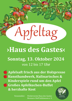 Salzhausen. Beim Salzhäuser Förderverein des Haus des Gastes e. V. steht ein kleines Jubiläum an: Am 13. Oktober begeht man zum 10. Mal den Apfeltag in und an „Brenners Hoff“ in der Schützenstraße 4. Deshalb gibt es in diesem Jahr ein erweitertes Programm rund um den Apfel für die ganze Familie. Die Kinder erwartet Spiel- und Bastelspaß zum Thema, während ihre Eltern und Großeltern in der Gartenanlage Kunst, Kunsthandwerk und Kulinarisches entdecken können. Schließlich wartet auch das traditionelle Apfelkuchenbuffet mit einer enormen Vielfalt an hausgemachten Köstlichkeiten bis hin zum Schwarzbrot mit Apfelschmalz auf hungrige Gäste. Wer es richtig herzhaft mag, findet bestimmt das Richtige beim Foodtruck auf dem Gelände, wo man sich zudem an vielen idyllischen Plätzen zum Genuss von Speisen und Getränken bei musikalischer Begleitung niederlassen kann. Aus der Apfelpresse fließt wie gewohnt zum Sofortgenuss der köstlich-frischgepresste Apfelsaft – und das mit der Unterstützung der Jugendfeuerwehr, die sich mit Muskelkraft dafür wieder so richtig ins Zeug legen wird. Der Vorstand um Dr. Joachim Lewerenz wird von zahlreichen Mitgliedern des Fördervereins unterstützt und freut sich darauf, von 12.00 -17.00 Uhr mit den Besucherinnen und Besuchern ins Gespräch zu kommen.