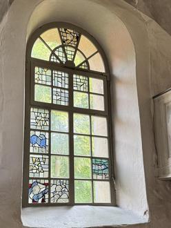 Für die Reparatur wurden die beschädigten kleinen Fenster ausgebaut. Zu sehen ist, wieviel Schaden allein am Nordfenster entstanden ist.